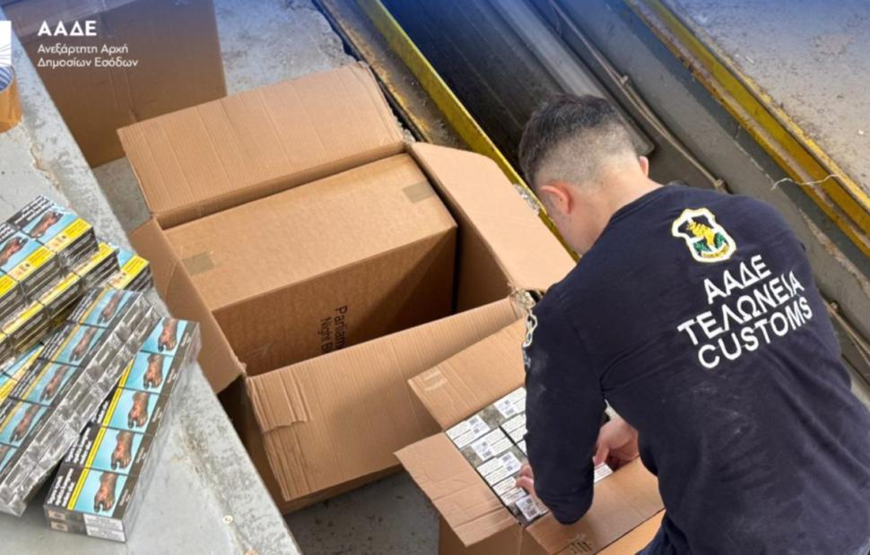 Αφού μετακινήθηκαν τα χαρτοκιβώτια με τα μεταλλικά εξαρτήματα από τον έλεγχο, βρέθηκαν 12.496 κούτες τσιγάρα των 200 τεμαχίων έκαστη, ήτοι 2.499.200 τεμάχια τσιγάρα εντός χαρτοκιβωτίων. Οι δασμοφορολογικές επιβαρύνσεις ανέρχονται στα 508.788,88 ευρώ και η συνολική τους αξία στα 577.067,78 ευρώ κατά προσέγγιση. Οι ακριβείς δασμοφορολογικές επιβαρύνσεις και η ακριβής αξία θα προσδιοριστούν έπειτα από την πραγματογνωμοσύνη α) των εταιρειών στις οποίες ανήκουν τα σήματα και β) του Γενικού Χημείου του Κράτους.