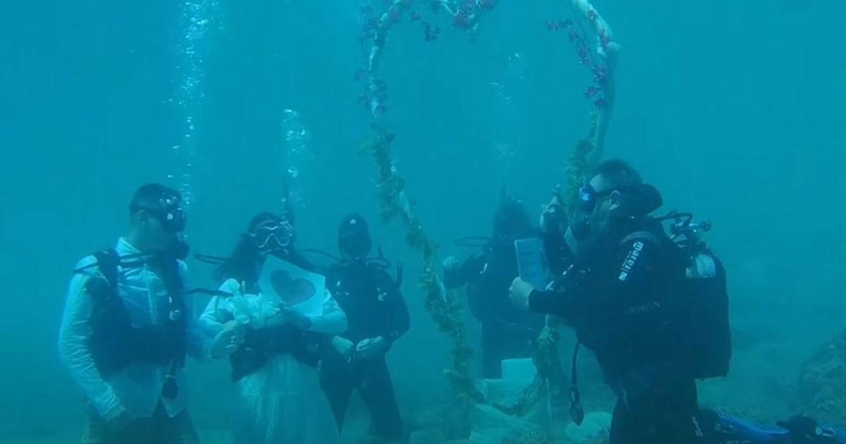 Ο Πέτρος και η Μυρτώ αντάλλαξαν όρκους αιώνιας αγάπης και πίστης στον μαγευτικό βυθό της Αλοννήσου. Το ζευγάρι πάντρεψε ο δήμαρχος Αλοννήσου, Πέτρος Βαφίνης, που είχε λάβει δίπλωμα κατάδυσης προκειμένου να τελεί γάμους κάτω από τα γαλαζοπράσινα νερά του νησιού.