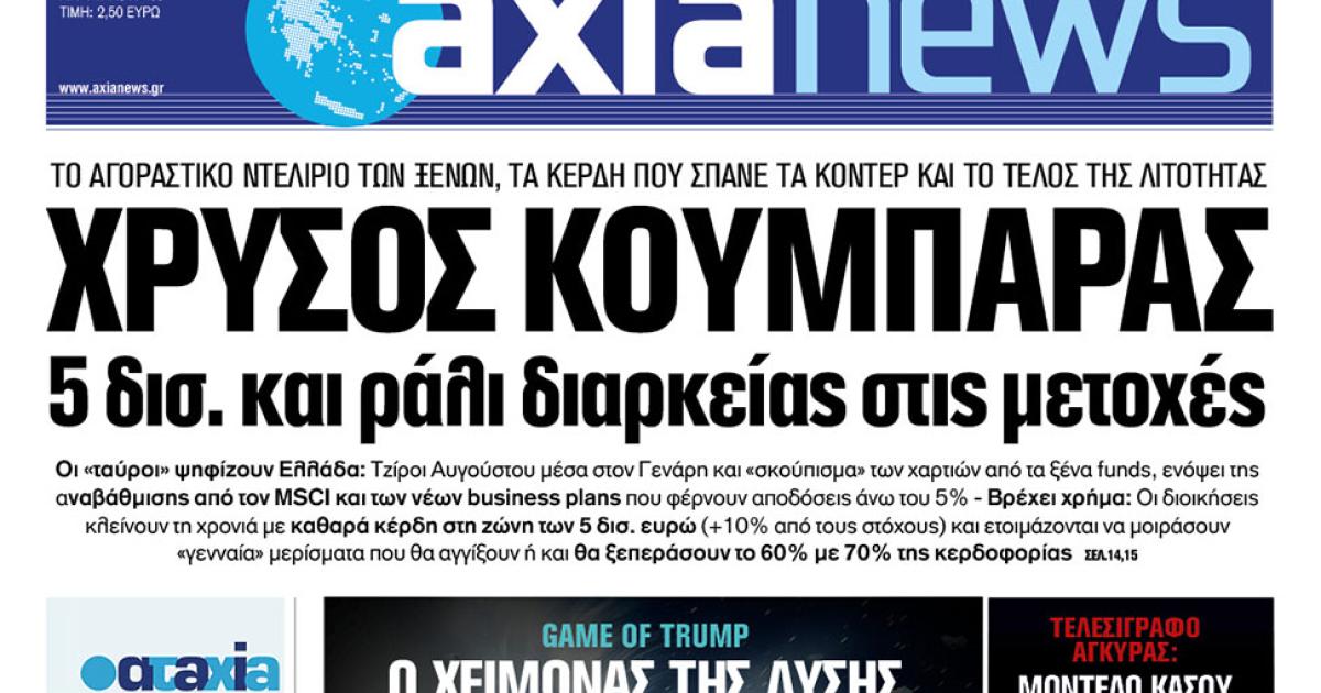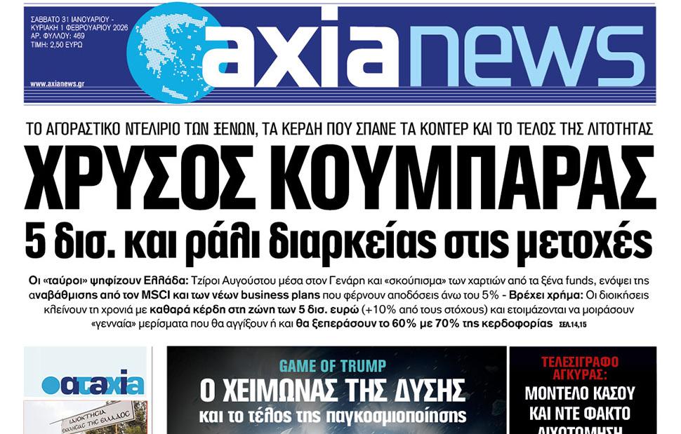 Με τίτλο: «Χρυσός κουμπαράς 5 δισ. και ράλι διαρκείας στις μετοχές» κυκλοφορεί αύριο, Σάββατο 31 Ιανουαρίου, η «Axianews».