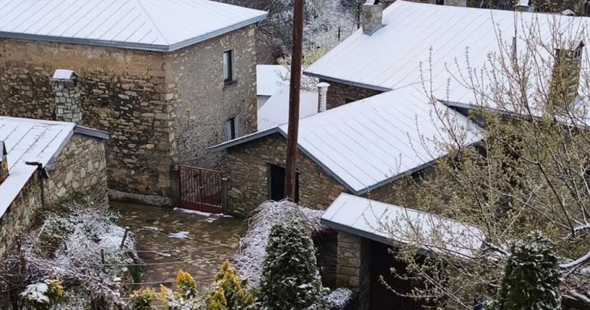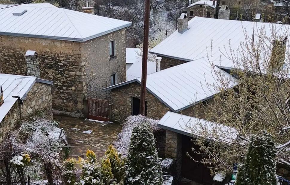 Οι ταράτσες των σπιτιών και οι αυλές στον παραδοσιακό οικισμό του Νυμφαίου ντύθηκαν ξανά στα λευκά τις τελευταίες ώρες, με τους κατοίκους να βλέπουν τον υδράργυρο να κάνει «βουτιά» στον -1 βαθμό Κελσίου.