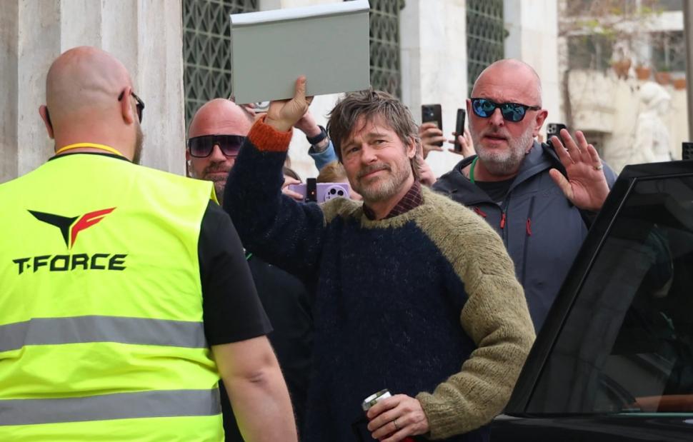 Σε φωτογραφίες βλέπουμε τον Μπραντ Πιτ να φτάνει στην πλατεία Κοτζιά, με τον ηθοποιό να χαιρετά ευγενικά τον κόσμο που βρέθηκε στο σημείο, προκειμένου να δει από κοντά τον χολιγουντιανό ηθοποιό.