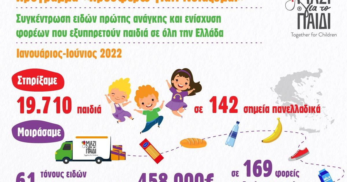 Η Ένωση «Μαζί για το Παιδί» στήριξε 19.710 παιδιά σε ανάγκη σε όλη την Ελλάδα το α΄εξάμηνο του 2022 μέσω του προγράμματος «Προσφέρω γιατί Νοιάζομαι».