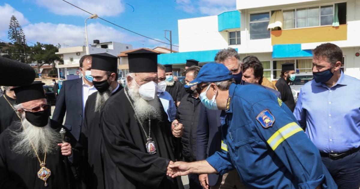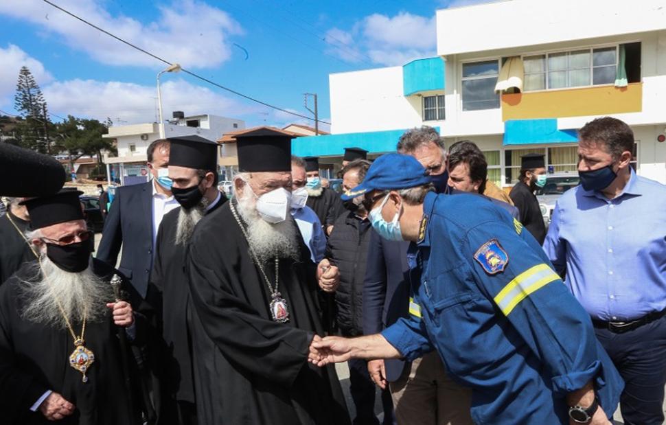 Ο αρχιεπίσκοπος Αθηνών επισκέφθηκε το συντονιστικό κέντρο στο Αρκαλοχώρι, όπου ενημερώθηκε αναλυτικά για την κατάσταση που έχει διαμορφωθεί, αλλά και τις ανάγκες που έχουν προκύψει για τους πολίτες, που φιλοξενούνται σε σκηνές και ξενοδοχεία.