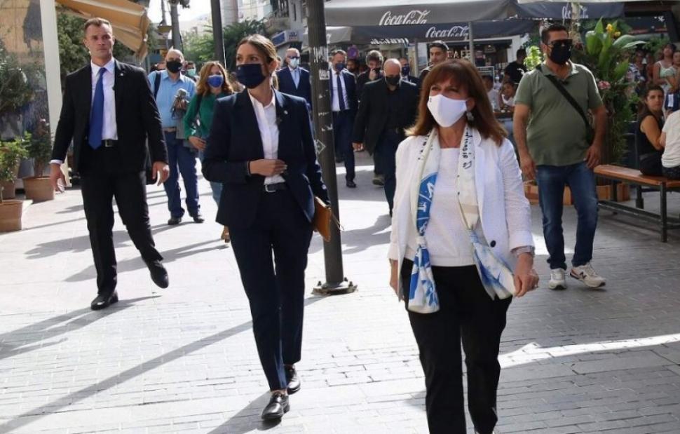 Την Πρόεδρο της Δημοκρατίας υποδέχθηκε στο κτίριο της βιβλιοθήκης ο πρόεδρος του δημοτικού συμβουλίου, Γρηγόρης Πασπάτης και η αντιδήμαρχος Πολιτισμού Αριστέα Πλεύρη, ενώ στη ξενάγηση συμμετείχε και ο διευθυντής της Βικελαίας Δημοτικής Βιβλιοθήκης, Δημήτρης Σάββας.