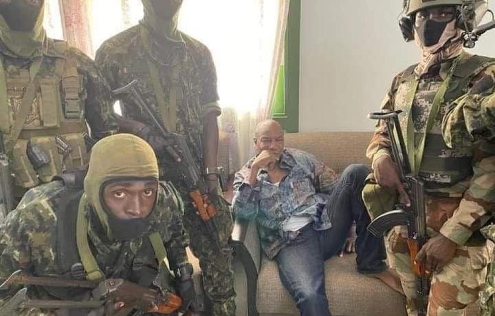 Οι πραξικοπηματίες διένειμαν ένα βίντεο, που εικονίζει τον πρόεδρο Κοντέ να βρίσκεται στα χέρια τους. Τον ερωτούν αν υπέστη κακομεταχείριση και ο Άλφα Κοντέ, ο οποίος φοράει παντελόνι τζιν και πουκάμισο και κάθεται σ’ έναν καναπέ, αρνείται να τους απαντήσει.