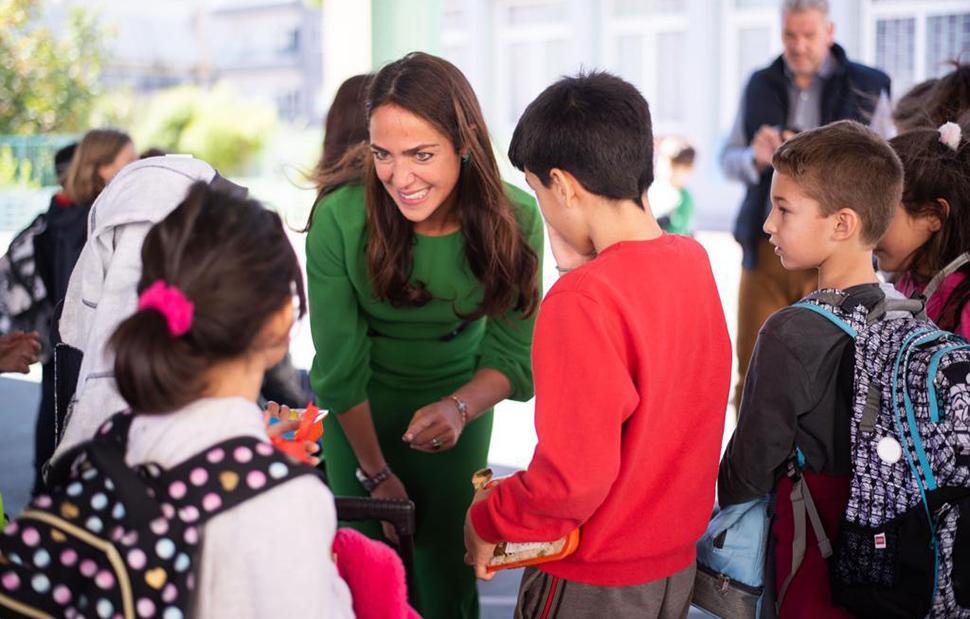 Σύμφωνα με την υφυπουργό, το πρόγραμμα των Σχολικών Γευμάτων έχει αναβαθμιστεί και βελτιωθεί, καθώς το διατροφολόγιο έχει πλέον προσαρμοστεί στις προτιμήσεις των παιδιών, τα γεύματα μαγειρεύονται στα πρότυπα της μεσογειακής διατροφής, ενώ οι πρώτες ύλες επιλέγονται με βάση τη διατροφική αξία τους.