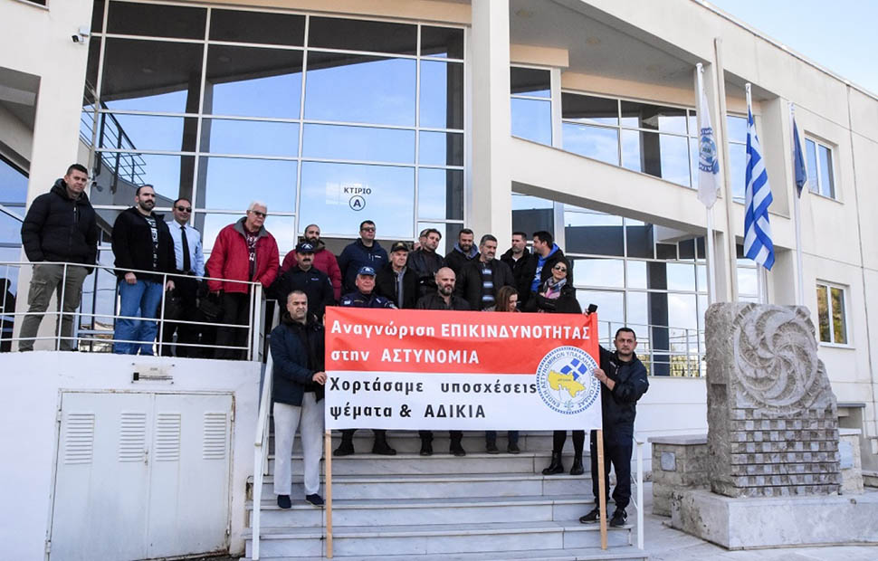 Συγκέντρωση διαμαρτυρίας πραγματοποίησαν αστυνομικοί και στην έδρα της Διεύθυνσης Ασφαλείας Αργολίδας, στο Ναύπλιο.