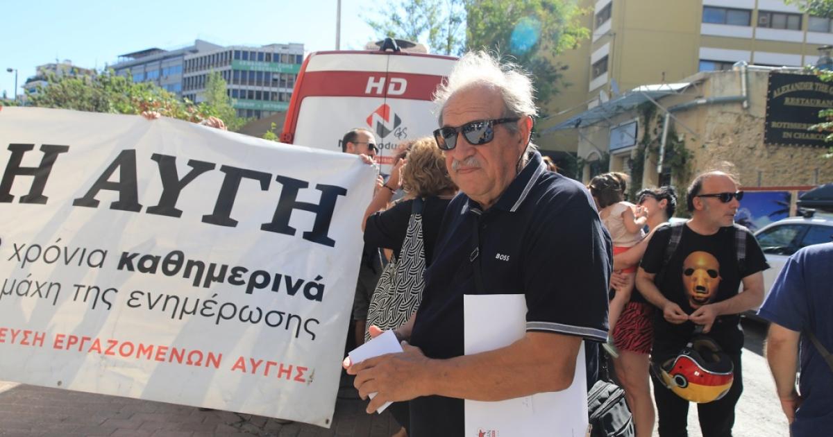 Συγκέντρωση διαμαρτυρίας πραγματοποιούν εργαζόμενοι της εφημερίδας «Αυγή» έξω από τα γραφεία που πραγματοποιείται σήμερα η συνεδρίαση της Κεντρικης Επιτροπής του ΣΥΡΙΖΑ.