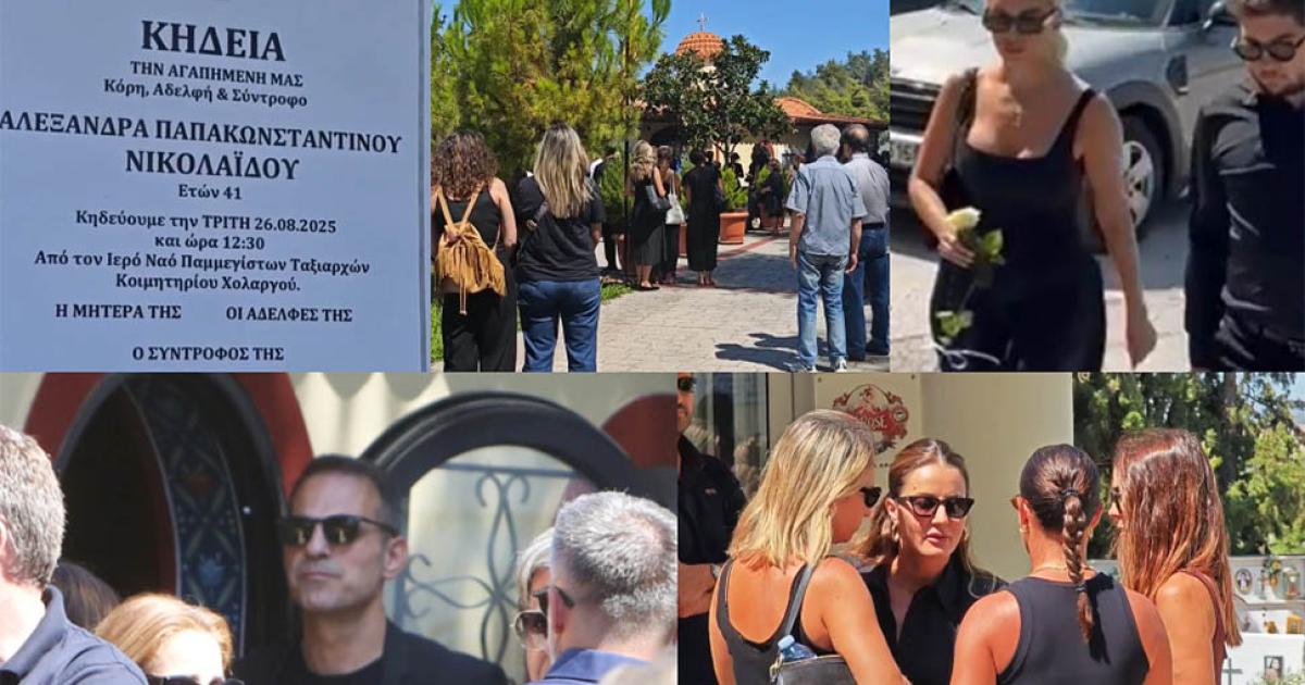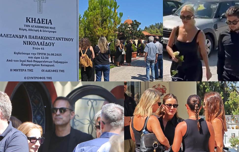 Φίλοι και συγγενείς συγκεντρώθηκαν στο κοιμητήριο Χολαργού για να αποχαιρετίσουν την Αλεξάνδρα Νικολαΐδου, που έφυγε από τη ζωή το Σάββατο 23 Αυγούστου, στα 41 της χρόνια από καρκίνο.