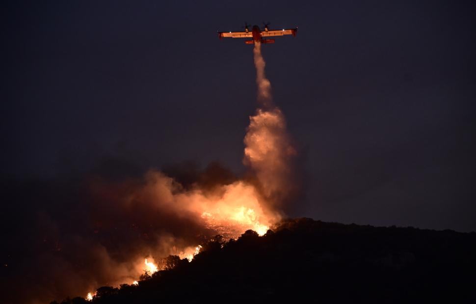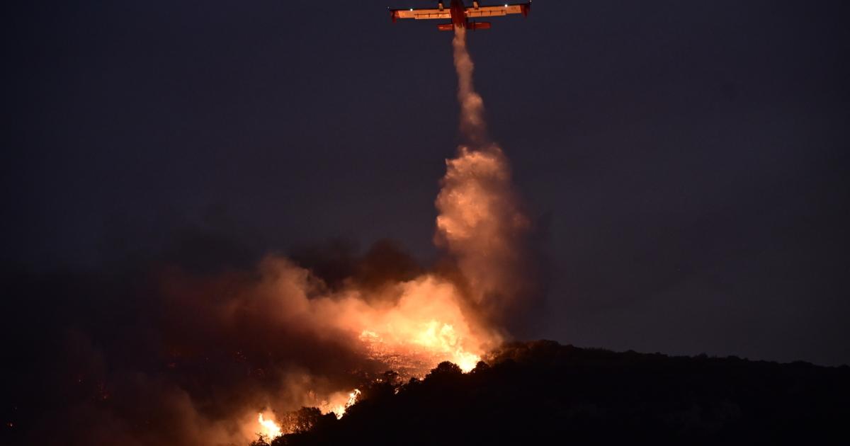 Ήταν κάτι που είδαμε για πρώτη φορά. Ο ήλιος είχε πέσει, ο ουρανός είχε σκοτεινιάσει, αλλά Canadair της Πυροσβεστικής συνέχισαν να πραγματοποιεί ρίψεις νερού πάνω από το εφιαλτικό μέτωπο της Ανατολικής Αττικής.