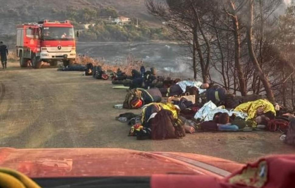 Τον γύρο του διαδικτύου κάνει η φωτογραφία από την Κερατέα, στην οποία οι πυροσβέστες ξάπλωσαν στο χώμα για να ξεκουραστούν αφού έδωσαν μεγάλη μάχη με τις φλόγες.
