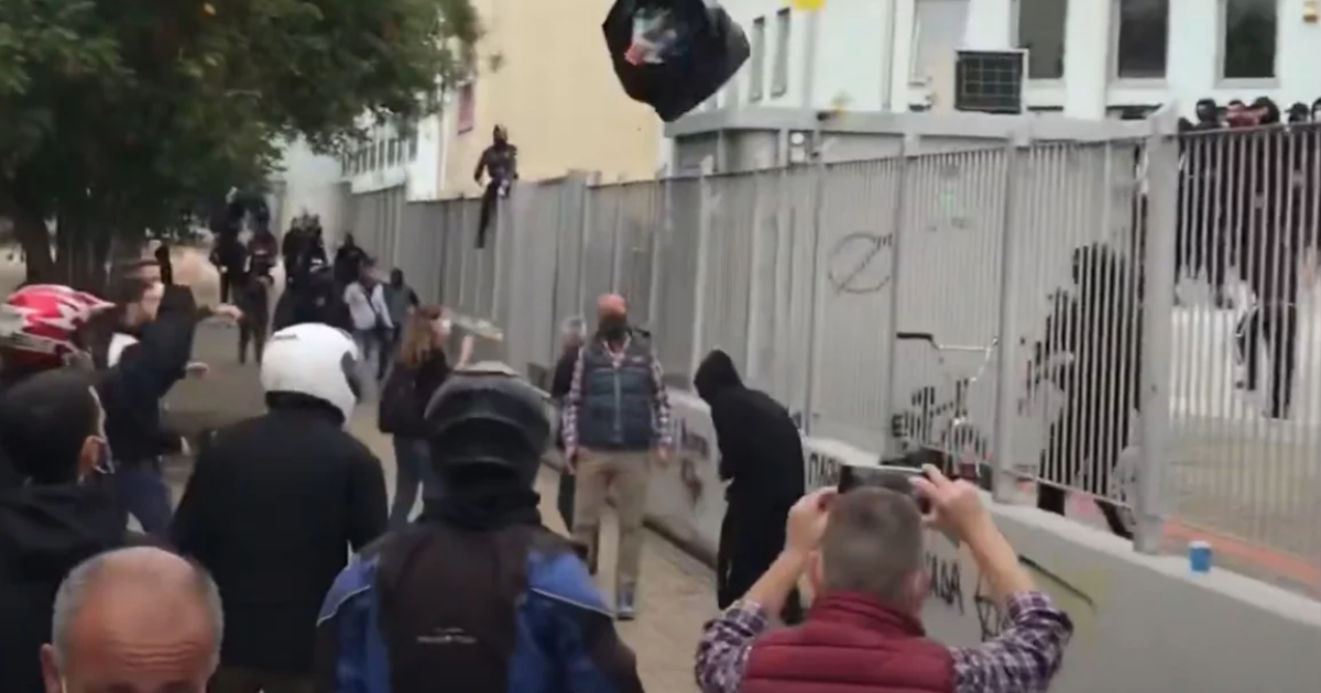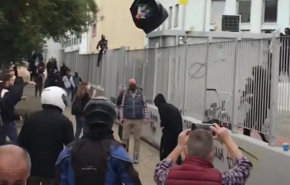 Σύμφωνα με πληροφορίες από τοπικά Μέσα Ενημέρωσης, κουκουλοφόροι που βρίσκονταν εντός του ΕΠΑΛ πέταξαν πέτρες, μπουκάλια, κροτίδες ακόμα και βόμβες μολότοφ προς την αντιφασιστική συγκέντρωση που πραγματοποιείται αυτή την ώρα έξω από το σχολείο.