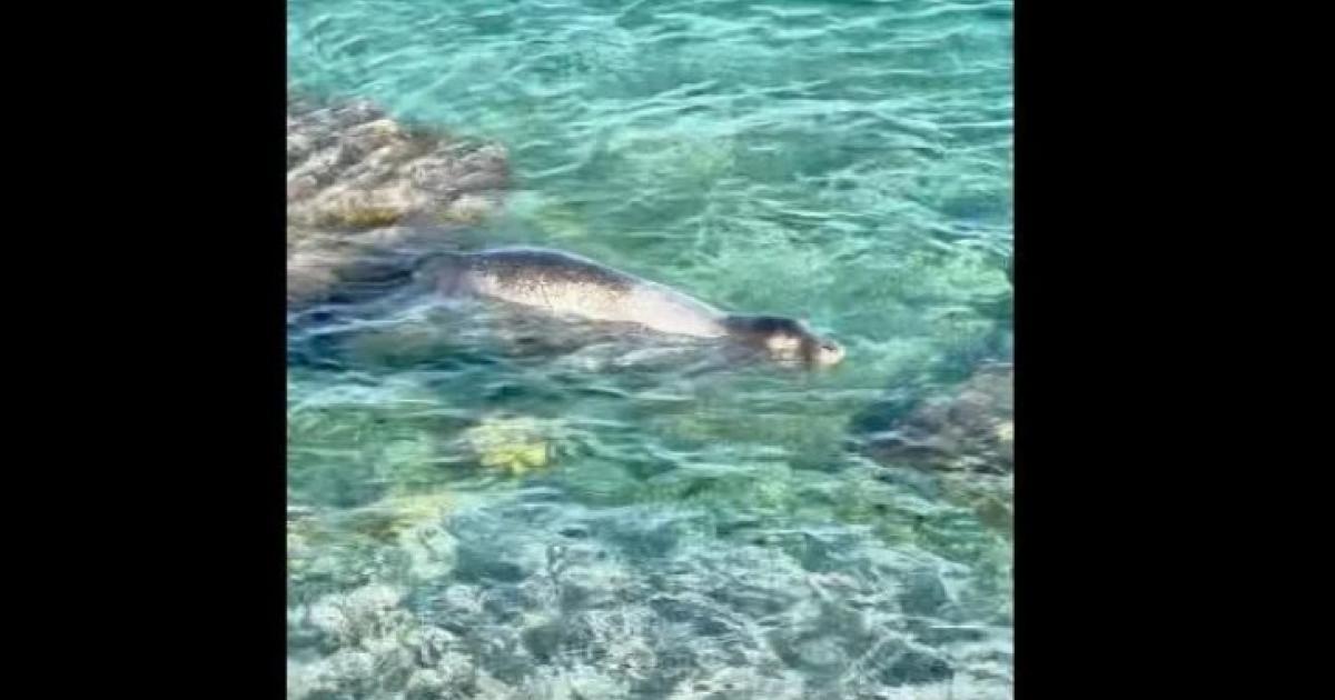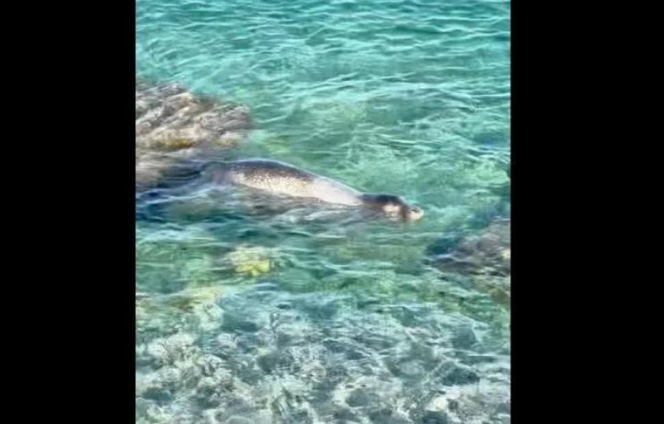 Μία φώκια εμφανίστηκε στην παραλία της Μαραθούντας στη Σύμη. Η φώκια κολυμπούσε αμέριμνα σε μικρή απόσταση από την ακτή.