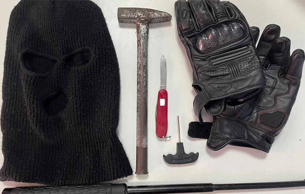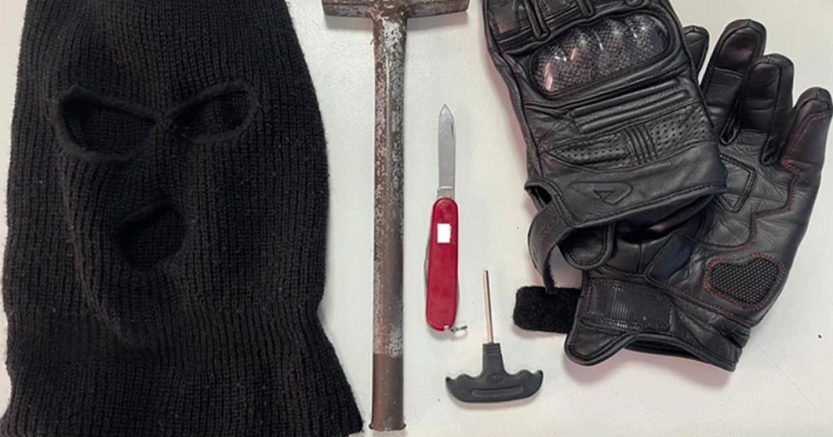 Από έρευνα που πραγματοποιήθηκε στην οικία του 16χρονου, βρέθηκαν και κατασχέθηκαν: σιδερένια ράβδος, σιδερένιο σφυρί, ελβετικός σουγιάς, κατσαβίδι, κουκούλα τύπου «full face», ζεύγος γαντιών με κοκάλινη επένδυση και κινητό τηλέφωνο.