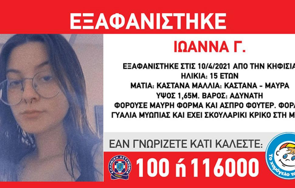«Στις 10/4/2021, πρωινές ώρες, εξαφανίστηκε από τη περιοχή της Κηφισιάς η Ιωάννα Γ., 15 ετών.