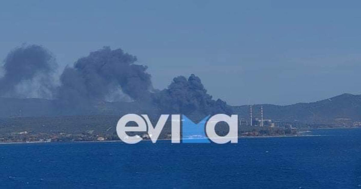 Μεγάλη φωτιά ξέσπασε το μεσημέρι της Κυριακής στο Αλιβέρι κοντά στο εργοστάσιο της ΔΕΗ.