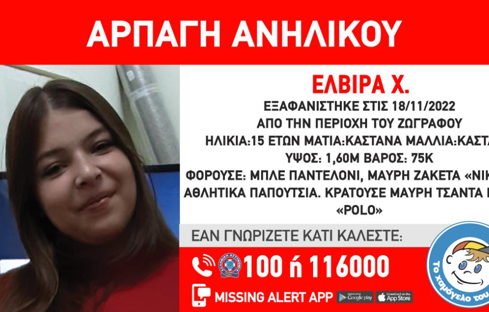 «Το Χαμόγελο του Παιδιού» ενημερώθηκε σήμερα, 20/11/2022 και άμεσα προχώρησε στη δημοσιοποίηση των στοιχείων της ανήλικης, κατόπιν αιτήματος της οικογένειάς της, η οποία έχει προβεί σε μήνυση αρπαγής της.