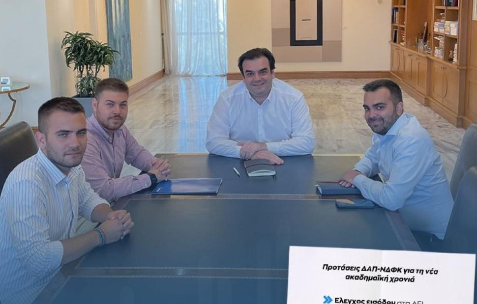 Συνάντηση με τον υπουργό Παιδείας, Κυριάκο Πιερρακάκη, είχε η ΔΑΠ-ΝΔΦΚ. Η «γαλάζια» φοιτητική παράταξη κατέθεσε στον υπουργό προτάσεις για την νέα ακαδημαϊκή χρονιά.