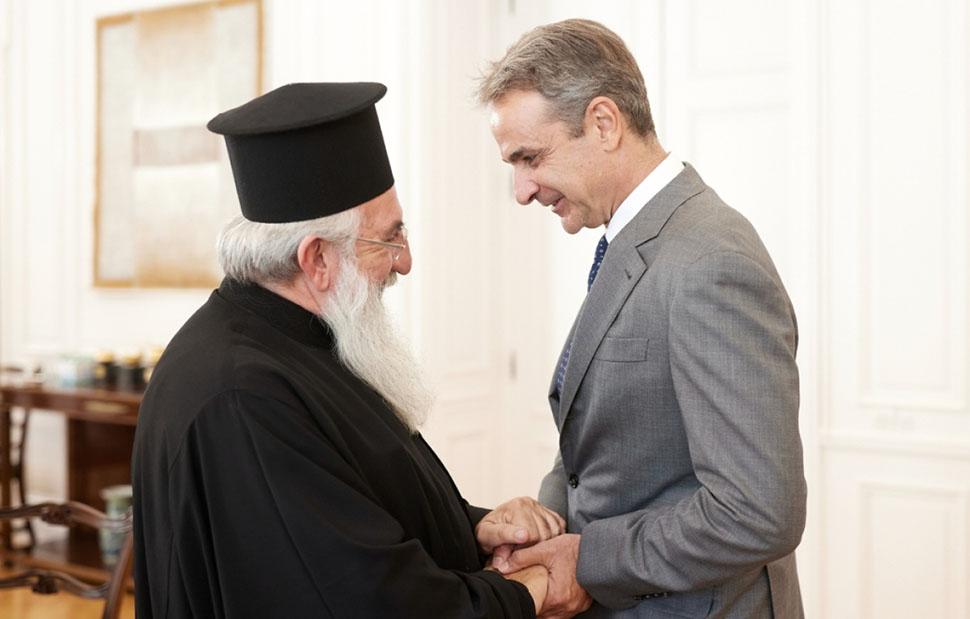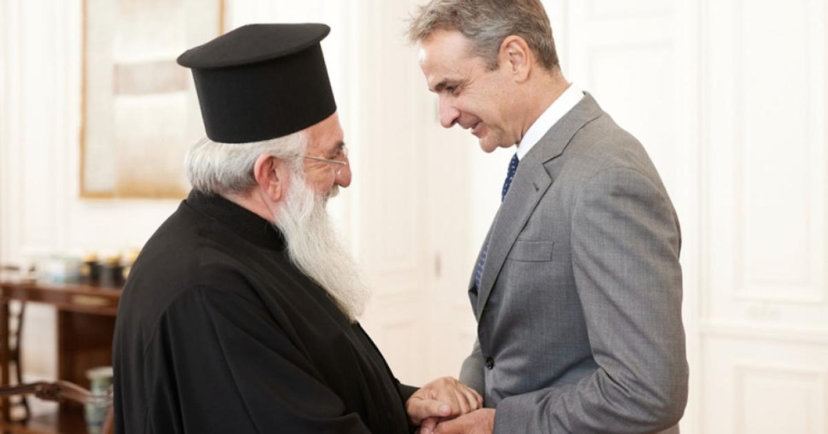 Με αντιπροσωπεία της Εκκλησίας της Κρήτης με επικεφαλής τον σεβασμιώτατο Αρχιεπίσκοπο Κρήτης κ. Ευγένιο, παρουσία του Περιφερειάρχη Κρήτης Σταύρου Αρναουτάκη, συναντήθηκε σήμερα ο πρωθυπουργός Κυριάκος Μητσοτάκης στο Μέγαρο Μαξίμου.