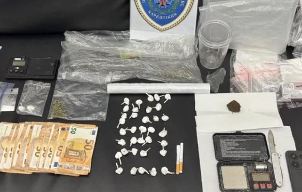 Στο διαμέρισμα της Ηλιούπολης, οι αρχές εντόπισαν 35 αυτοσχέδιες συσκευασίες («φιξάκια») συνολικού μικτού βάρους 37,91 γραμμαρίων, σακουλάκι κοκαΐνης 10,26 γραμμαρίων και πλαστικό δοχείο με κατεργασμένη κάνναβη καθαρού βάρους 15,19 γραμμαρίων. Επιπλέον, βρέθηκαν συσκευασίες στεγανοποίησης με υπολείμματα κάνναβης, μεταλλικό κουτάλι με ίχνη κοκαΐνης, σουγιάς με υπολείμματα κατεργασμένης κάνναβης, πλαστικό δοχείο ανάμιξης με υπολείμματα ουσίας, δύο κενά φυσίγγια τσιγάρων, ηλεκτρονική ζυγαριά ακριβείας και πλήθος νάιλον σακουλακια επιμερισμού.