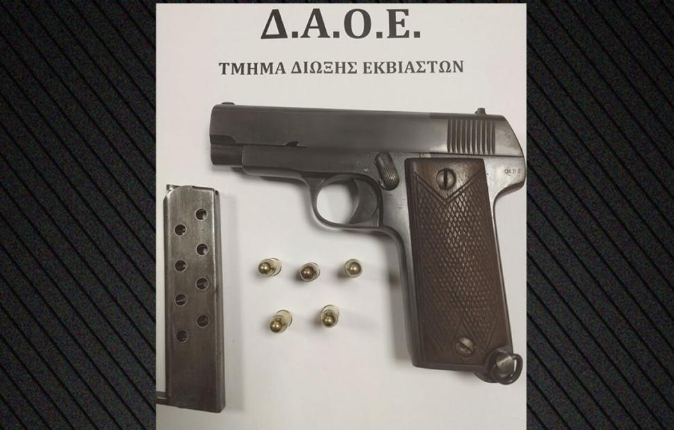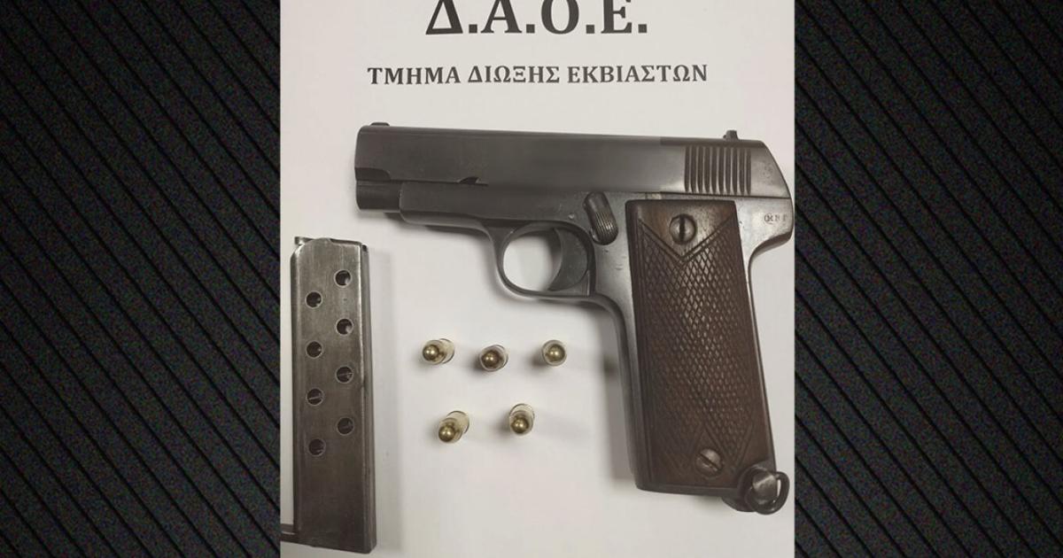 Ειδικότερα, ο συλληφθείς εντοπίστηκε από αστυνομικούς του Τμήματος Δίωξης Εκβιαστών, στο πλαίσιο ελέγχων σε καταστήματα υγειονομικού ενδιαφέροντος στην ευρύτερη περιοχή της Αττικής, να φέρει μέσα σε τσαντάκι πιστόλι με γεμιστήρα, που περιείχε 5 φυσίγγια, ενώ επιπλέον κατασχέθηκαν και 2 κινητά τηλέφωνα.