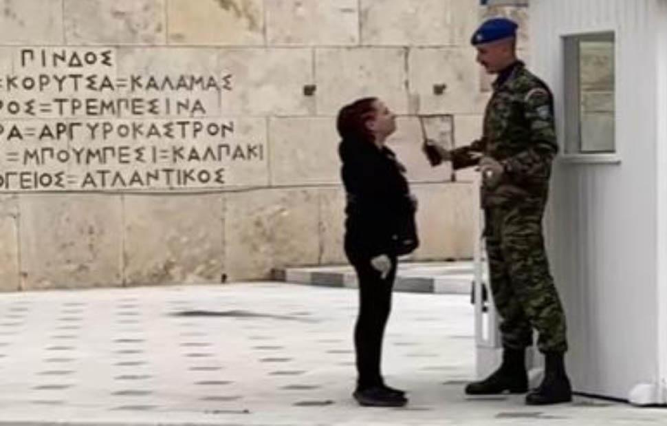Μάλιστα κόλλησε και μια σερβιέτα, στο φυλάκιο δίπλα από το μνημείο του Αγνώστου Στρατιώτη.