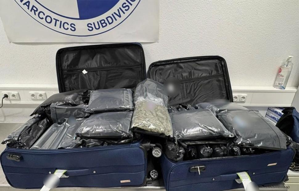 Από τον έλεγχο που πραγματοποιήθηκε στις αποσκευές τους, συνολικά κατελήφθησαν να έχουν αποκρύψει σε νάιλον συσκευασίες εντός των αποσκευών τους, -72- κιλά και -700- γραμμάρια ακατέργαστης κάνναβης υδροπονικής καλλιέργειας (skunk).