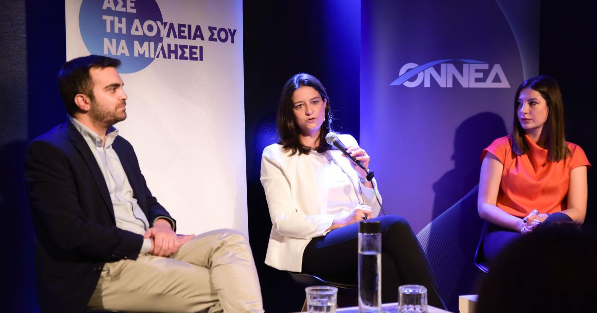 Συνεχίζονται οι συναντήσεις της ΟΝΝΕΔ με νέους επαγγελματίες, με σκοπό να καταγραφούν οι προβληματισμοί τους, αλλά και να προωθηθούν νέες πολιτικές και προτάσεις για τη βελτίωση της εργασιακής τους καθημερινότητας. Οι συναντήσεις γίνονται στο πλαίσιο της καμπάνιας της «γαλάζιας» οργάνωσης με τίτλο: «Άσε τη δουλειά σου να μιλήσει».