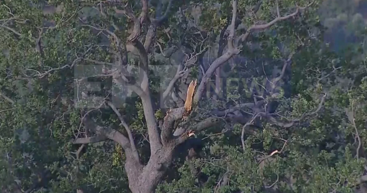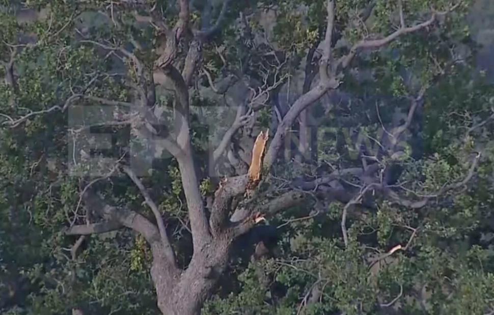 Το κλαδί του δέντρου στο οποίο πιθανολογείται ότι χτύπησε το Canadair κι έχασε τον πλωτήρα με αποτέλεσμα να συντριβεί κατέγραψε η κάμερα της ΕΡΤ.