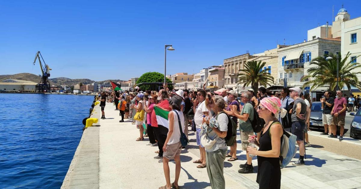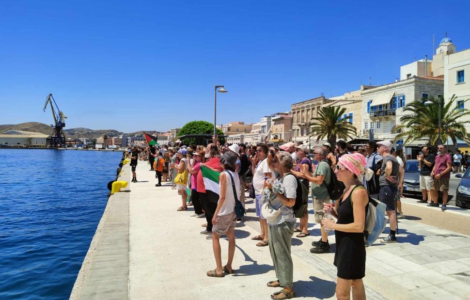 Περίπου 300 άτομα συγκεντρώθηκαν το πρωί της Τρίτης στο λιμάνι της Ερμούπολης στη Σύρο, διαμαρτυρόμενοι για την παρουσία του κρουαζιερόπλοιου.