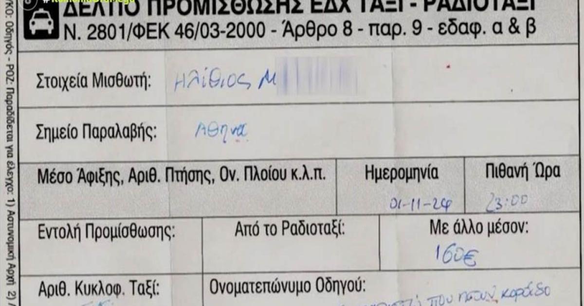 Σύμφωνα με το Mega, αντί για απόδειξη, ο ταξιτζής έδωσε στον τουρίστα ένα δελτίο προμίσθωσης μέσω του οποίου ο επαγγελματίας οδηγός φαίνεται να τον αποκαλεί ηλίθιο, σημειώνοντας «Ευχαριστώ που ήσουν κορόιδο».
