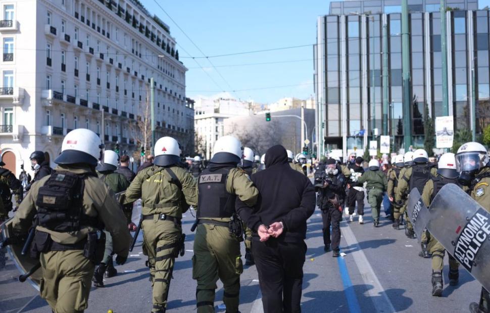 Σε διακόσιες προσαγωγές προχώρησε προχώρησε η Αστυνομία από το πρωί στο κέντρο της Αθήνας πριν και κατά τη διάρκεια της μεγάλης συγκέντρωσης για την τραγωδία στα Τέμπη.