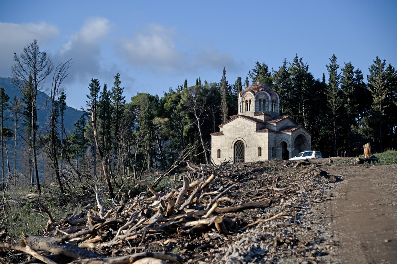 Ειδικά συνεργεία βρίσκονται στο κοιμητήριο πραγματοποιώντας εργασίες απομάκρυνσης κορμών των καμένων δέντρων.