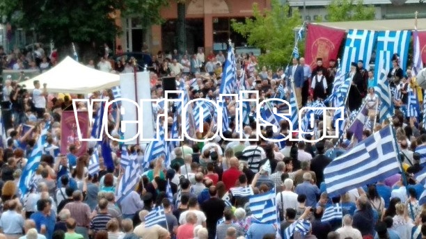Περίπου 3.000 πολίτες με σημαίες διαδήλωσαν υπέρ της ελληνικότητας της Μακεδονίας. Παρών ήταν και ο περιφερειάρχης Κεντρικής Μακεδονίας, Απόστολος Τζιτζικώστας.