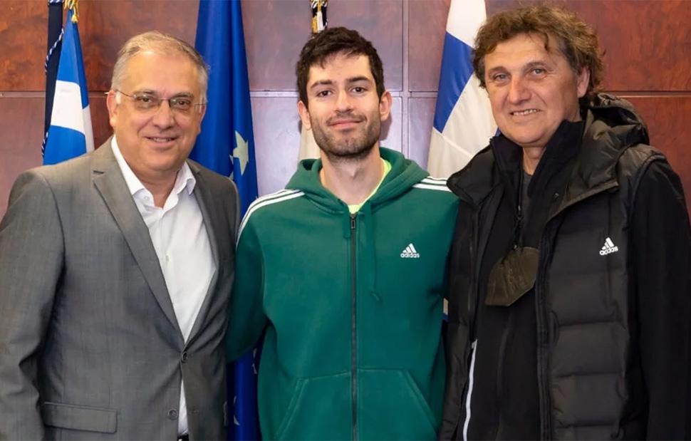 Τον χρυσό ολυμπιονίκη και παγκόσμιο πρωταθλητή στο μήκος, Μίλτο Τεντόγλου και τον προπονητή του Γιώργο Πομάσκι, υποδέχθηκε στο γραφείο του ο Υπουργός Προστασίας του Πολίτη Τάκης Θεοδωρικάκος.