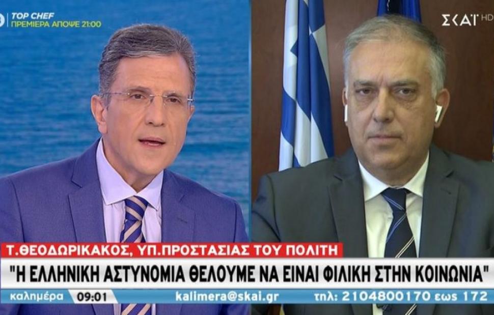 «Η προστασία του πολίτη είναι απόλυτη προτεραιότητα της κυβέρνησης, γιατί αν οι πολίτες δεν είναι και δεν αισθάνονται ασφαλείς, δεν υπάρχει ούτε ελευθερία ούτε ευημερία. Επομένως σηκώνουμε τα μανίκια κι επιταχύνουμε τις δράσεις μας με την ελληνική αστυνομία», δήλωσε χαρακτηριστικά ο κ. Θεοδωρικάκος στον ΣΚΑΙ.