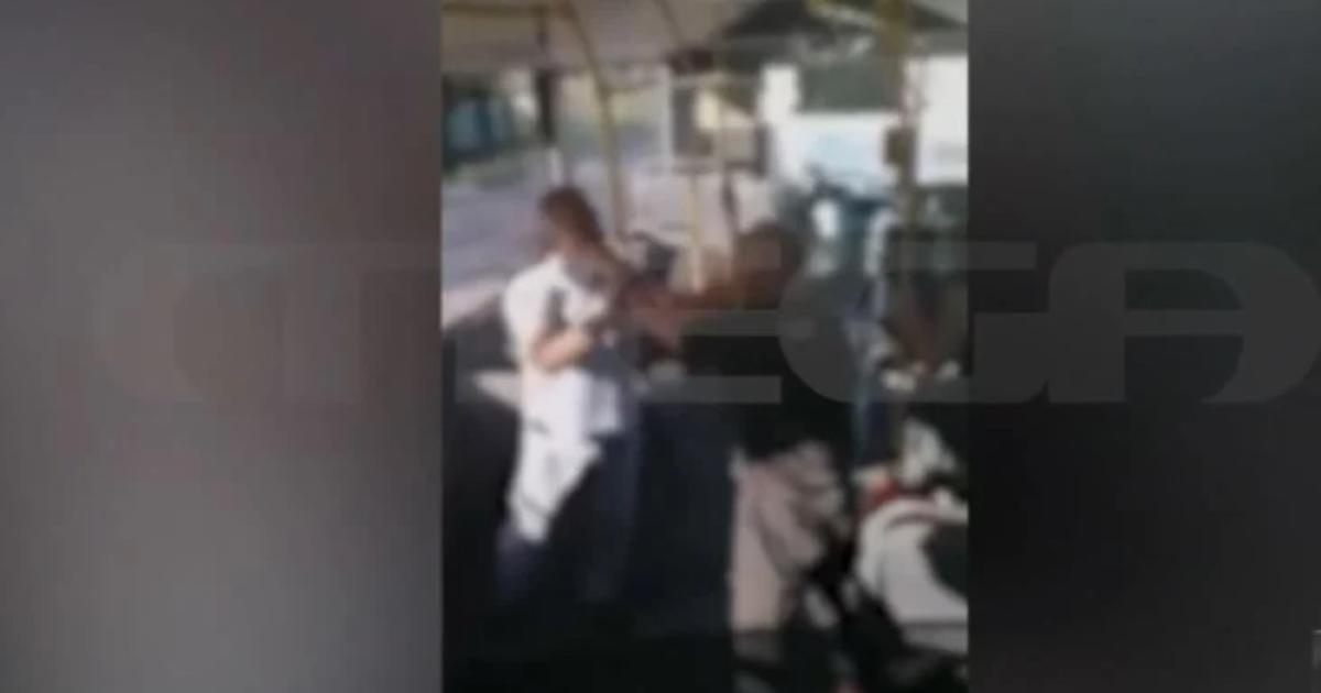 Το απίστευτο σκηνικό βίας εκτυλίσσεται στη μέση του λεωφορείου γραμμή 24 στη Θεσσαλονίκη. Ο οδηγός λίγα λεπτά πριν, είχε αναγκαστεί να ακινητοποιήσει το όχημα. Ο καυγάς συνεχίζεται μπροστά στα έντρομα μάτια άλλων επιβατών.