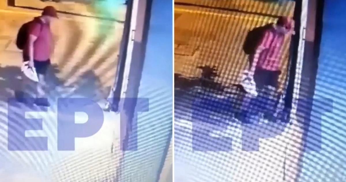 Ο άντρας που απεικονίζεται στο βίντεο στην Θεσσαλονίκη, αφού ελέγχει πως δεν τον κοιτάζει κανείς, πλησιάζει το γατάκι, το τσαλαπατάει και φεύγει ανενόχλητος.