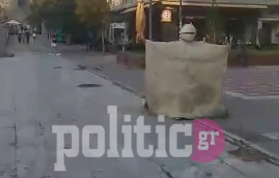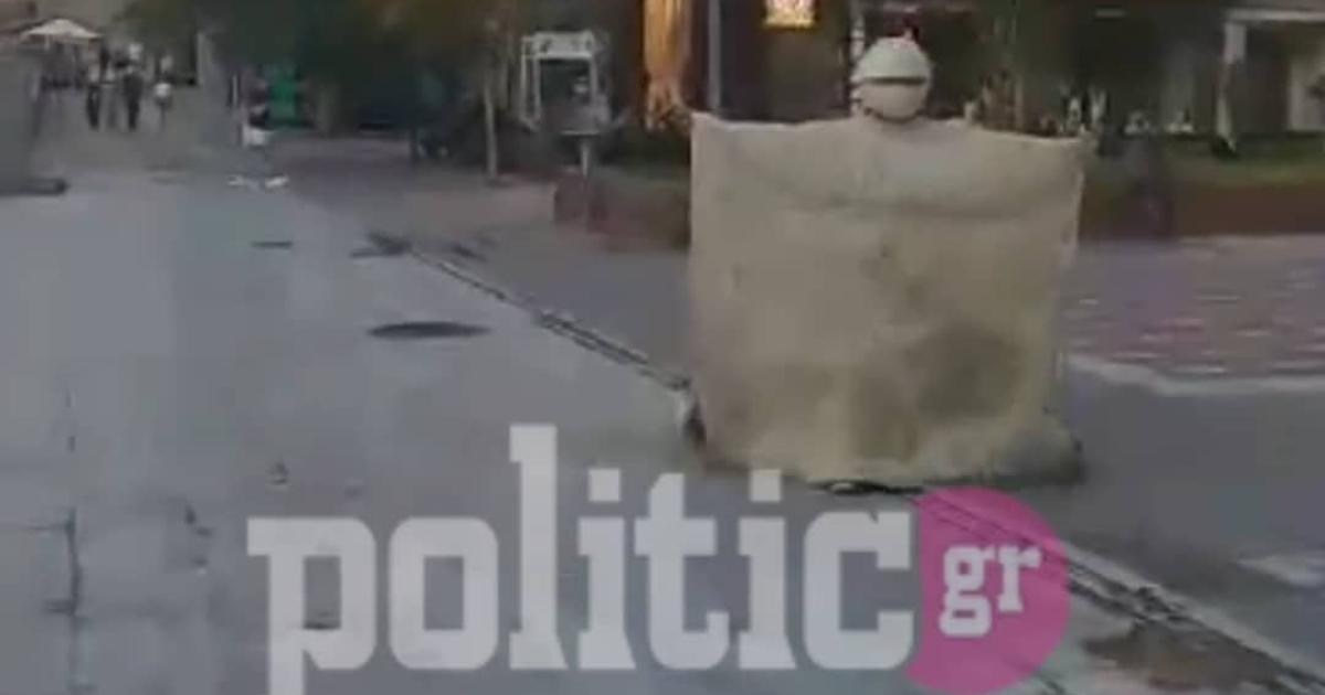 Όπως σημειώνει το politic.gr, ο «χιτώνας» που φορούσε ο περίεργος άντρας φαίνεται πως είναι ο ίδιος με εκείνον που είχε τοποθετηθεί στα κάγκελα στην περιοχή της Καμάρας, όπου βρισκόταν αφημένος για μήνες στο πλαίσιο καλλιτεχνικής δράσης.
