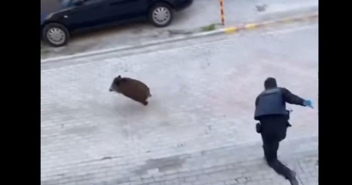 Όπως φαίνεται και στις εικόνες που τράβηξαν με τα κινητά τους οι περίοικοι, το αγριογούρουνο δεν ήταν… συνεργάσιμο και οι αστυνομικοί τα βρήκαν σκούρα απέναντί του.