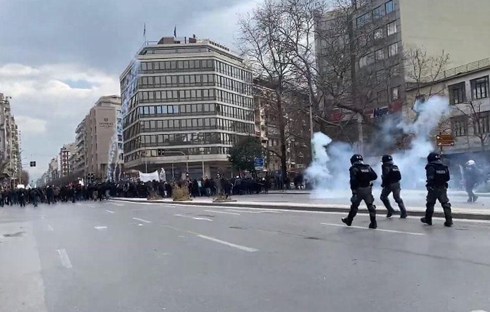 Άτομα που συμμετείχαν στις πορείες, τη στιγμή που έφθασαν έξω από τον ΟΣΕ, πέταξαν μπογιές, πέτρες και δεκάδες μολότοφ κατά των δυνάμεων των ΜΑΤ, οι οποίες προχώρησαν σε χρήση χημικών. Οι άνδρες των ΜΑΤ απώθησαν τα άτομα προς το κέντρο της Θεσσαλονίκης, όπου συνεχίσθηκαν τα επεισόδια, σύμφωνα με το thestival.gr.