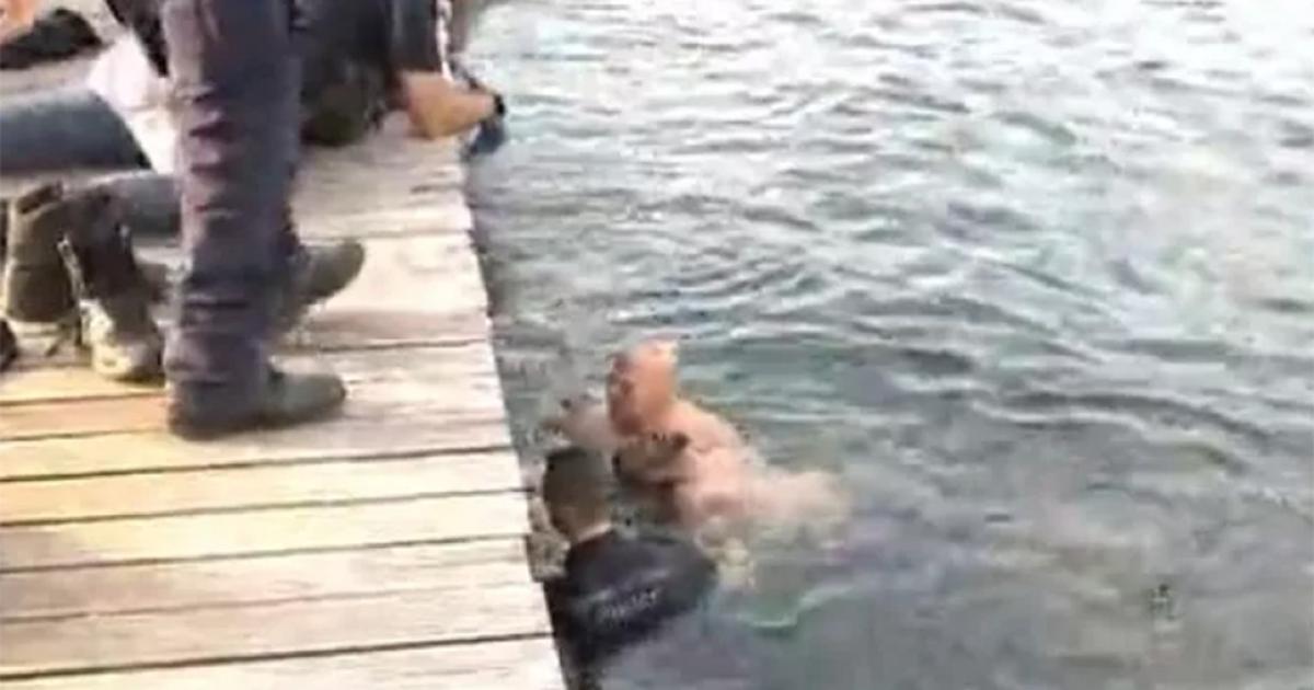Όπως φαίνεται σε πλάνο που καταγράφηκε φαίνεται ο άνδρας να ξεφεύγει από τους αστυνομικούς και να τρέχει ημίγυμνος προς τη νέα παραλία με τους αστυνομικούς. Ο άνδρας τελικά πήδηξε στο νερό με τις χειροπέδες περασμένες στους καρπούς του.