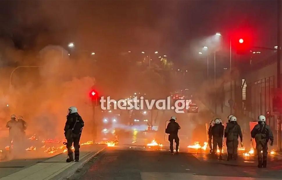 Σε πεδίο μάχης μετατράπηκε το κέντρο της Θεσσαλονίκης, μετά τη συναυλία του Λεξ στο Καυτανζόγλειο με τις μολότοφ να πέφτουν βροχή.