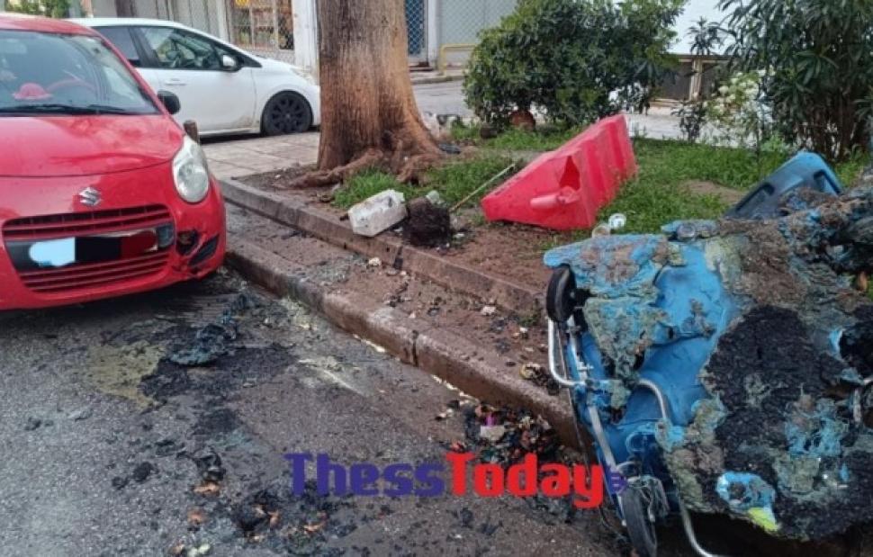 Φωτιά σε κάδους απορριμμάτων έβαλαν άγνωστοι, τα ξημερώματα, σε περιοχές της Θεσσαλονίκης.