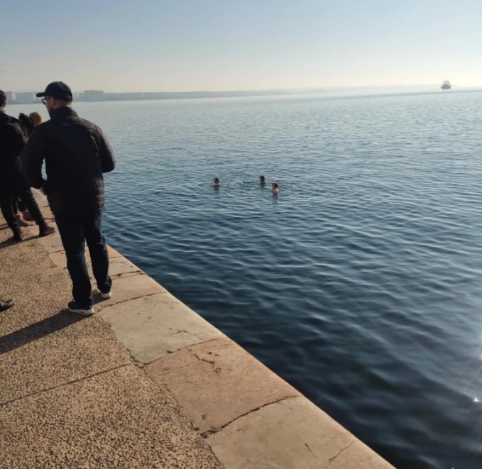 Στα νερά του Θερμαϊκού βούτηξαν τέσσερις φοιτήτριες από την Πορτογαλία και το Βέλγιο, που βρίσκονται με πρόγραμμα Erasmus στην Θεσσαλονίκη.