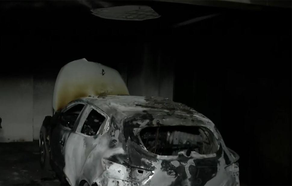 Η φωτιά επεκτάθηκε άμεσα σε παρακείμενα οχήματα, με αποτέλεσμα να προκληθούν σοβαρές ζημιές σε δύο μοτοσικλέτες και ένα σκούτερ που βρίσκονταν δίπλα στο αυτοκίνητο.