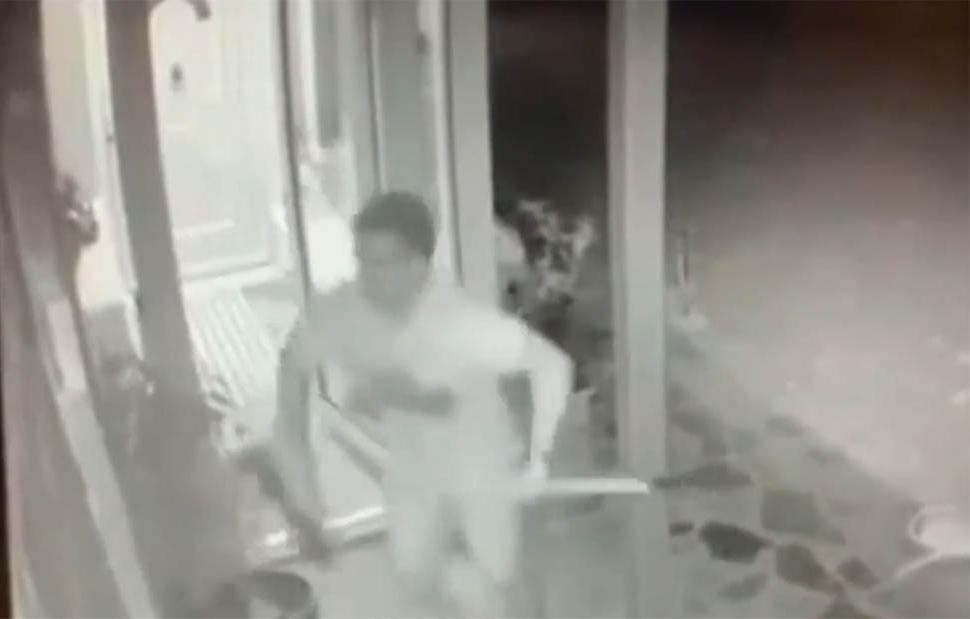 Όπως φαίνεται στο βίντεο από κάμερα ασφαλείας που έφερε στη δημοσιότητα η ΕΡΤ, μόλις κατάλαβε τι συμβαίνει, ο ιδιοκτήτης πήρε μια σκούπα και άρχισε με αυτή να χτυπάει το παράθυρο και την πόρτα του σπιτιού για να προκαλέσει θόρυβο και αναστάτωση.