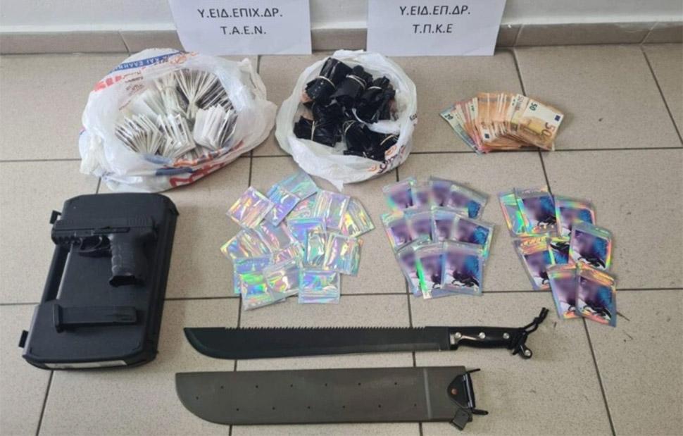 Οι αρχές συνέλαβαν έναν 66χρονο και μια 38χρονη, σε βάρος των οποίων, καθώς και σε βάρος 57χρονης ημεδαπής, σχηματίσθηκε κατά περίπτωση δικογραφία, για παράβαση του Νόμου περί εξαρτησιογόνων ουσιών και του Νόμου περί όπλων.