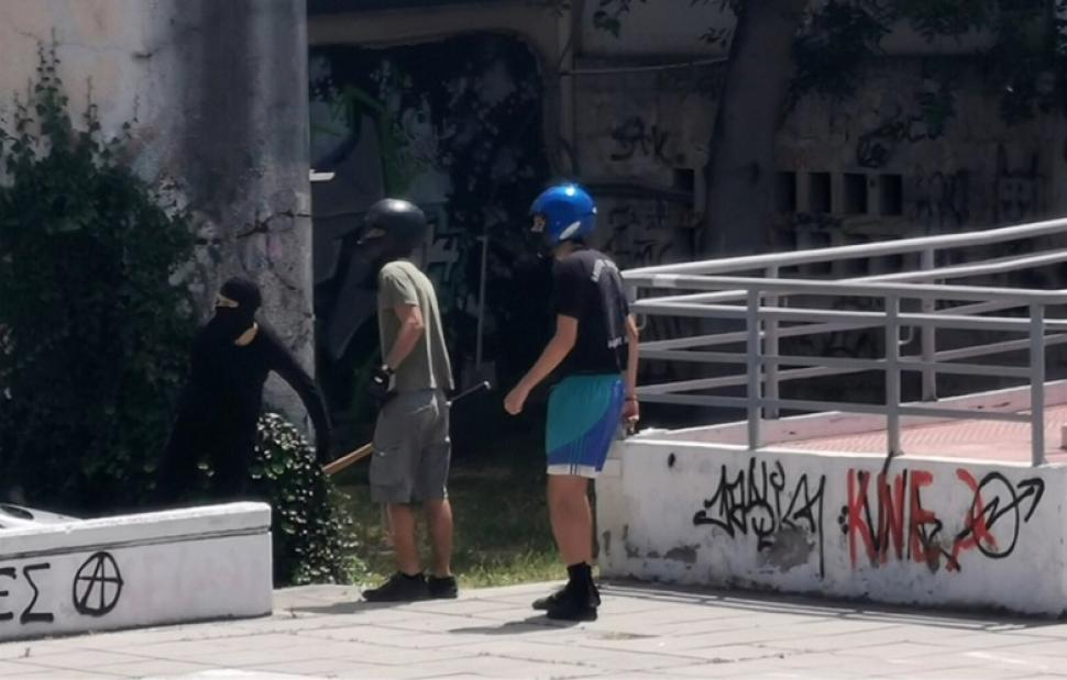 Άτομα με καλυμμένα τα χαρακτηριστικά του προσώπου τους επιτέθηκαν με μάρμαρα και πέτρες και άλλα αντικείμενα προς τις δυνάμεις των ΜΑΤ που περιφρουρούν τις εργασίες για την κατασκευή βιβλιοθήκης. Οι αστυνομικοί απάντησαν με χρήση χημικών και κρότου λάμψης προκειμένου να διαλύσουν τα άτομα.
