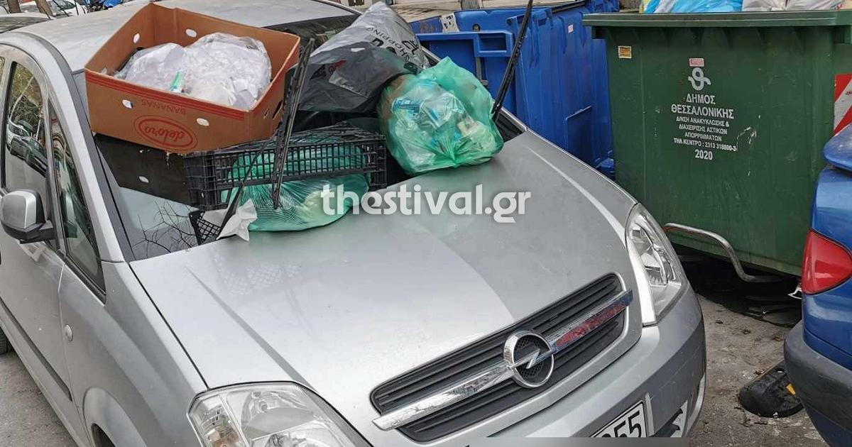 Με τον δικό τους τρόπο αποφάσισαν να τιμωρήσουν κάποιοι έναν ασυνείδητο οδηγό, ο οποίος παρκάροντας το αυτοκίνητό του στο κέντρο της Θεσσαλονίκης, έκλεισε δύο κάδους απορριμμάτων.